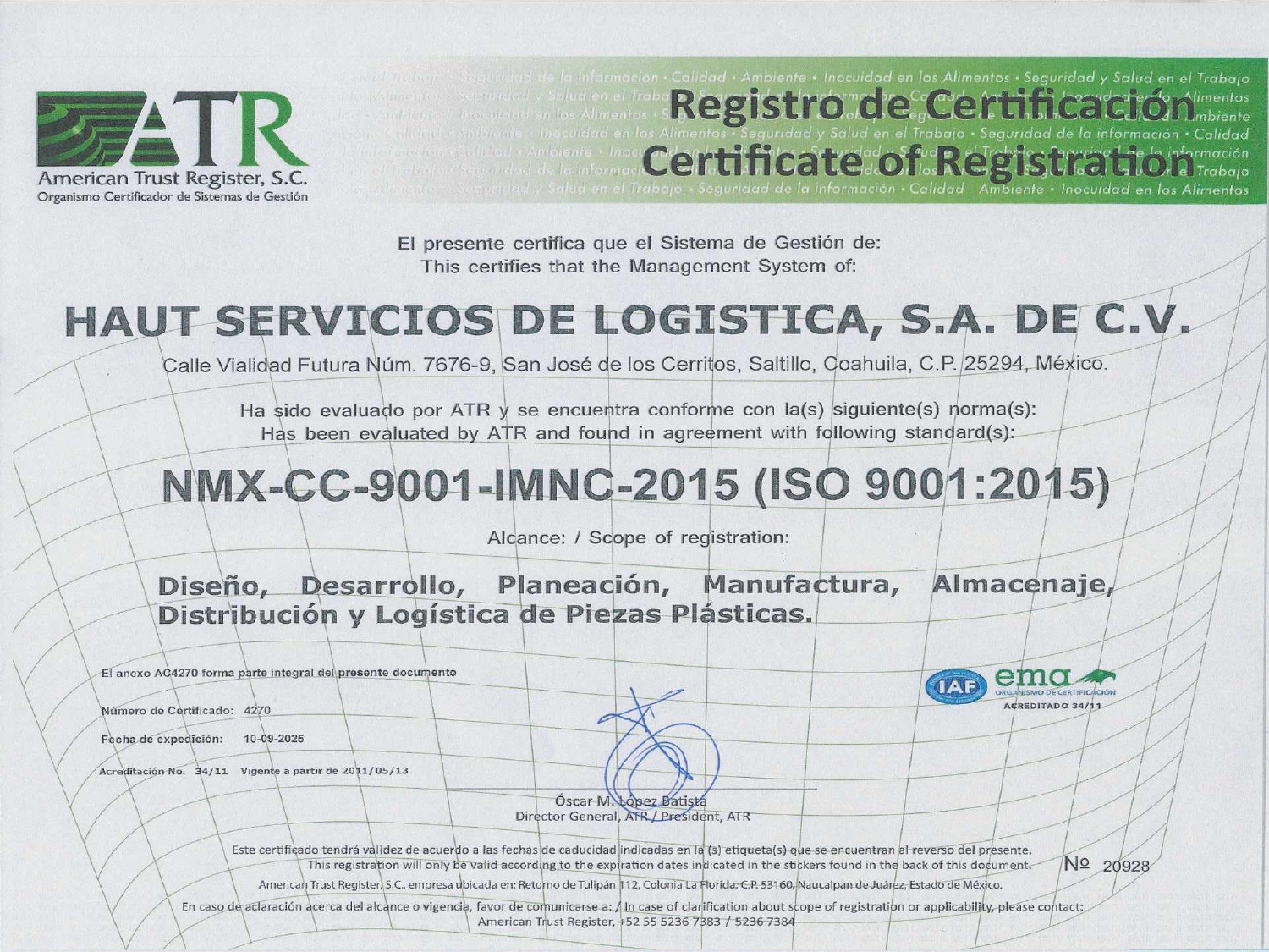 Empresa certificada con ISO 9001, Marca registrada.